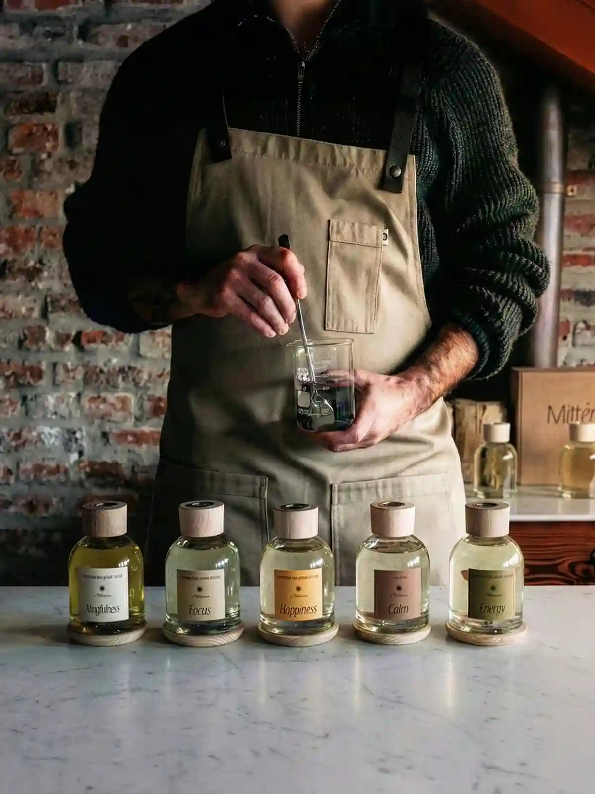 Un ambientador estándar enmascara olores. Las composiciones de Mittérium están diseñadas para modular estados.